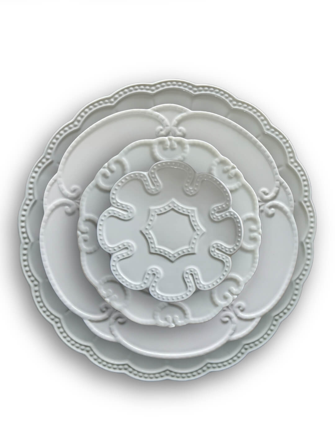 Bring romantic elegance to your table with the Annalise White plate range. Each plate is adorned with intricate embossed patterns and a gently scalloped edge, all in a crisp white finish. The vintage-inspired detailing adds a touch of old-world charm, making this collection perfect for weddings, formal dinners, or any event where you want to create a memorable, refined atmosphere.