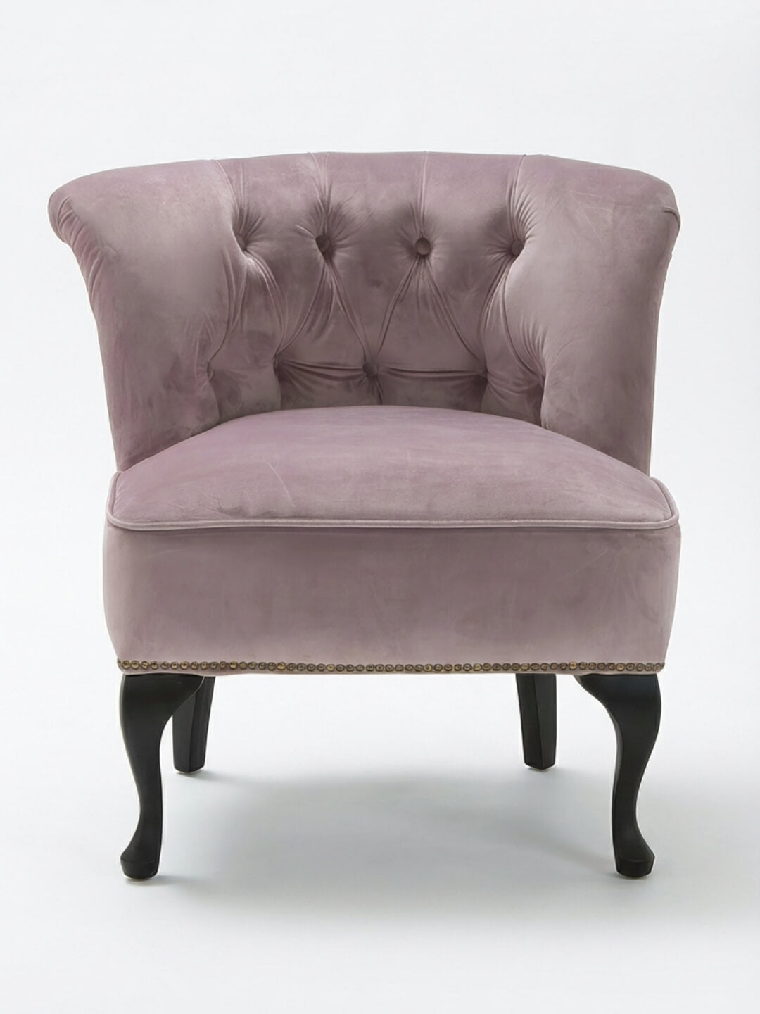Add a touch of vintage glamour and refined comfort to your event with the Cameo Chair. Upholstered in plush dusky pink velvet, this chair features elegant button tufting, a gently curved back, and classic cabriole legs - blending timeless Its delicate colour and graceful silhouette pair effortlessly with both contemporary and traditional décor, while the subtle stud detailing adds an extra note of luxury. Whether styled solo or alongside the Cameo Sofa, this chair is sure to become a favourite seat for guests and a highlight in any space. sophistication with a modern romantic palette. The Cameo Chair’s inviting proportions and soft upholstery make it perfect for lounge areas, bridal suites, or as a chic accent in styled vignettes.