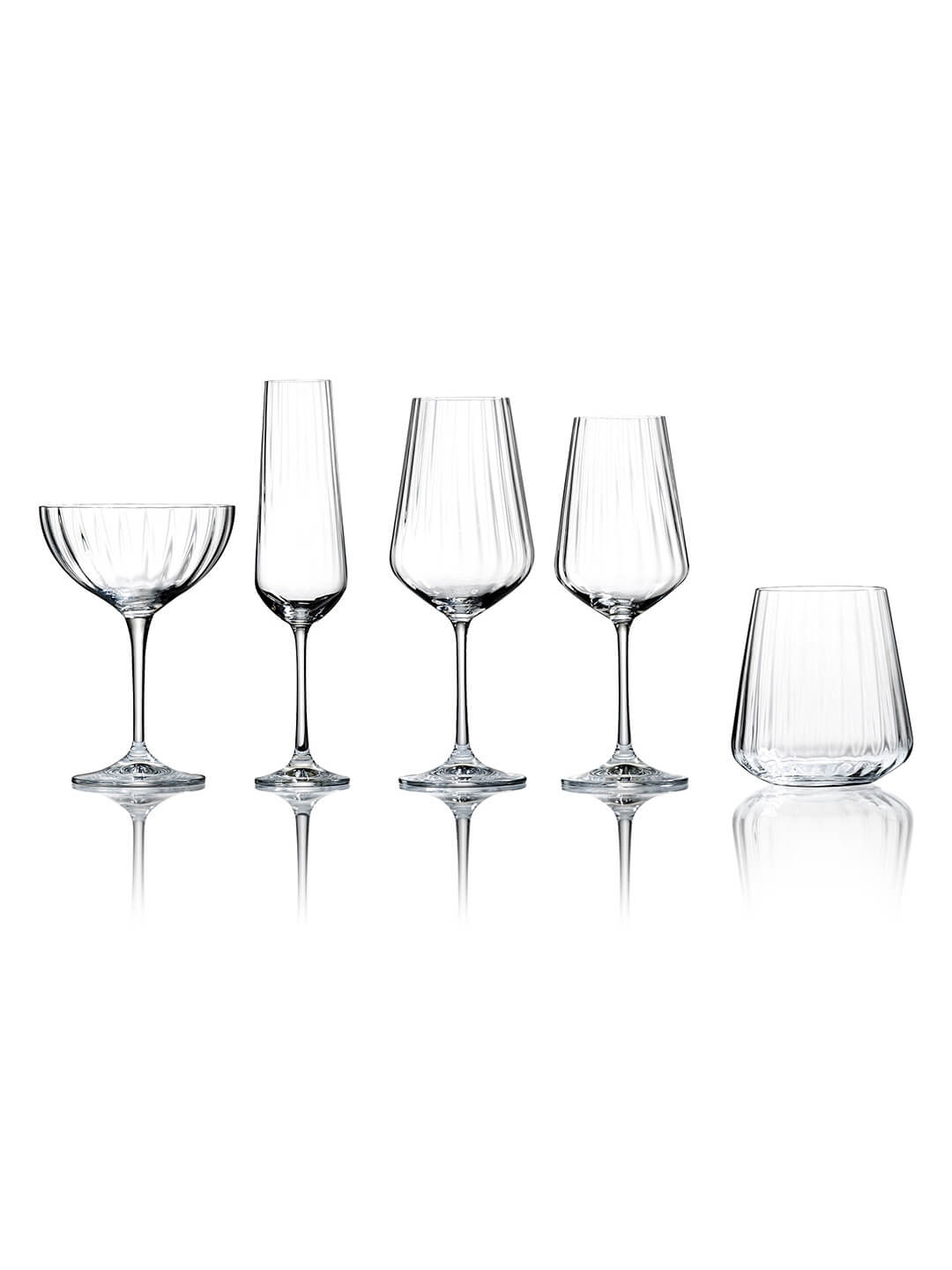 Bring a sense of refined artistry to your table with the Catherine Glassware Collection. Inspired by the graceful movement of cascading water, each piece in this range features a distinctive vertical ripple pattern that catches and reflects the light with every pour. The effect is both contemporary and timeless, making Catherine a favourite for luxury weddings, formal dinners, and stylish celebrations.