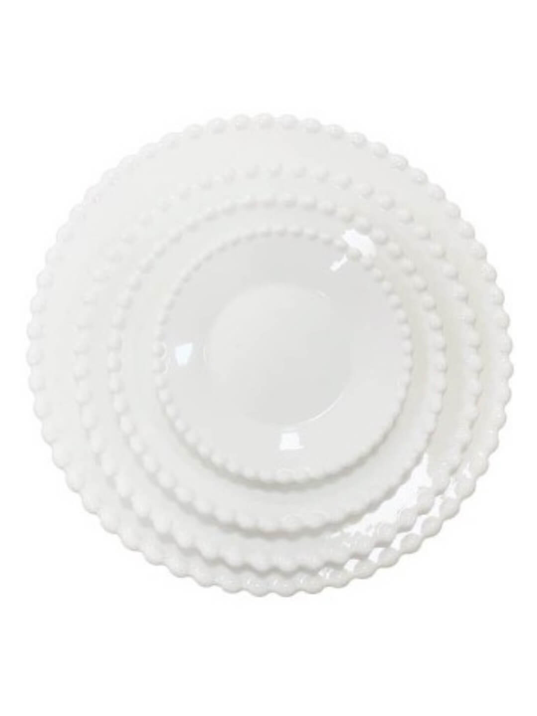 Experience classic luxury with the Château Pearl plate range. This timeless collection features a luminous white finish, gently scalloped edges, and delicate pearl-bead detailing. Versatile and refined, Château Pearl is perfect for both traditional and contemporary tablescapes - from grand weddings to intimate dinners.