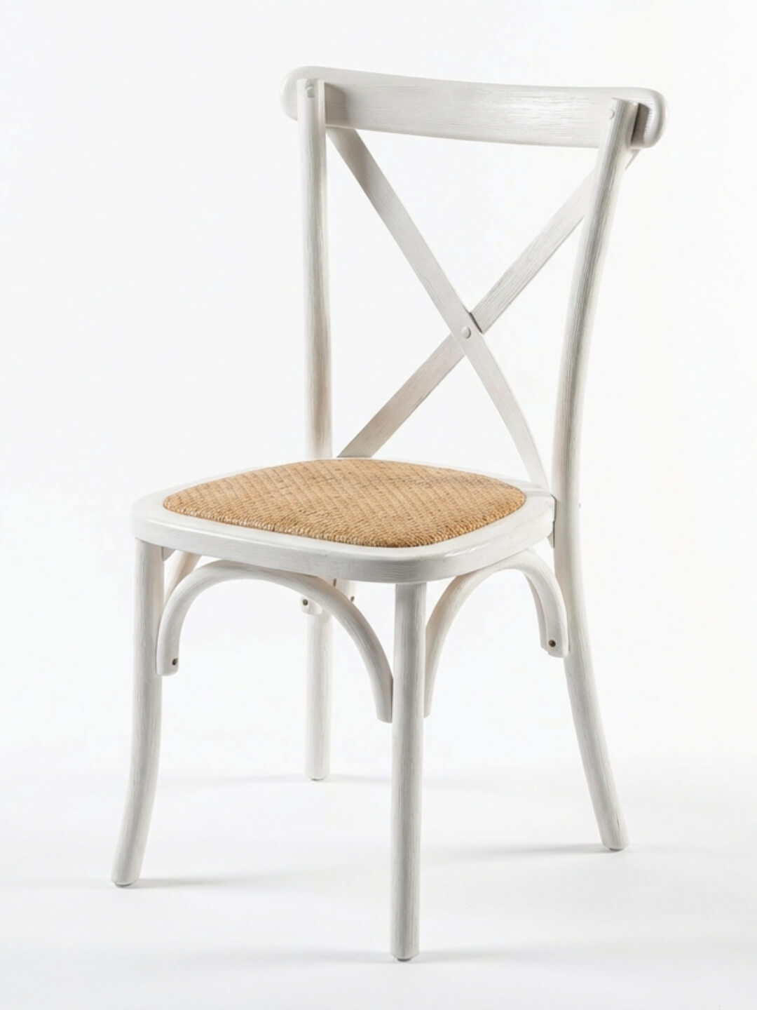 Bring rustic charm and timeless style to your event with the Cross Back Chair - a favourite for weddings, garden parties, and elegant celebrations. Crafted with a classic cross-back silhouette and available in Natural Weathered Oak, Limed Oak, and White finishes, this chair effortlessly complements both traditional and contemporary settings. Each chair features a natural rattan seat that offers comfort and texture. For added softness or a more finished look, you can add a burlap seat pad in natural linen (optional). The Cross Back Chair’s versatile design makes it equally suited for long banquet tables, outdoor ceremonies, or intimate gatherings.