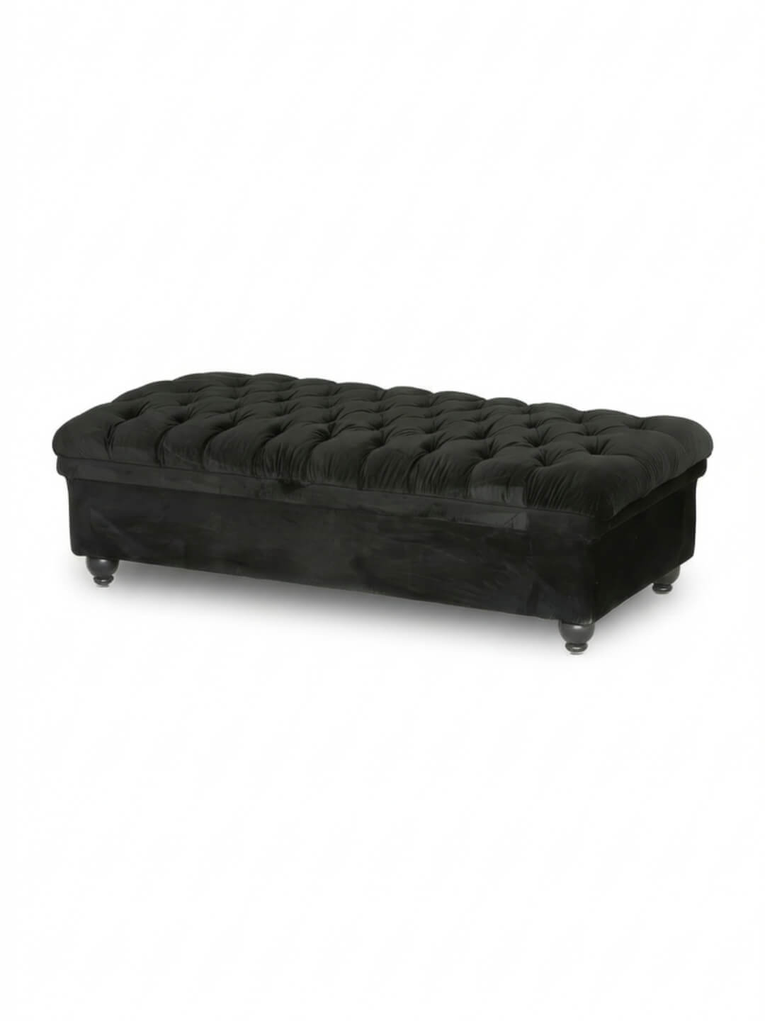 Bring a touch of dramatic luxury to your lounge with the Luxe Noir Pouffe. Upholstered in sumptuous black velvet and finished with deep button tufting, this generously sized pouffe offers both style and versatility. Its plush surface makes it perfect as extra seating, a chic coffee table, or an opulent footrest for any sophisticated setting. The Luxe Noir Pouffe’s elongated silhouette and classic turned legs echo the elegance of a traditional chesterfield, while its rich black hue ensures a bold, contemporary statement. Whether styled with the Luxe Noir Sofa or used as a standalone accent, it’s ideal for weddings, cocktail parties, or creative installations where comfort and glamour are key.