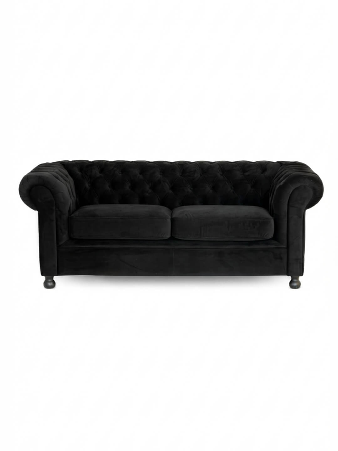 Make a dramatic statement with the Luxe Noir Sofa - a classic chesterfield reimagined in sumptuous black velvet. Featuring deep button tufting, elegantly rolled arms, and a sculpted silhouette, this sofa brings an air of timeless sophistication and modern glamour to any event. Its plush cushions and generous proportions ensure comfort as well as style, making it the perfect anchor for lounge areas, cocktail parties, or styled photo shoots. The Luxe Noir Sofa’s rich, dark hue and refined detailing blend seamlessly with both contemporary and vintage-inspired décor, offering versatility for weddings, upscale gatherings, and creative installations. Whether styled solo or paired with jewel-toned accents, this sofa is designed to impress.