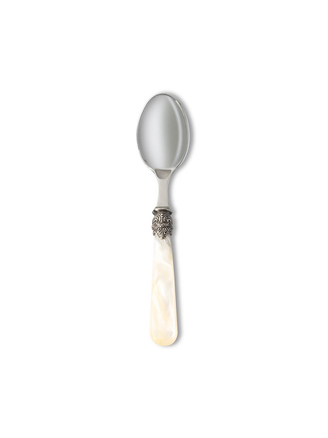 Introduce a touch of vintage glamour to your table with the Marina Cutlery Collection. Each piece features a lustrous mother-of-pearl effect handle, beautifully complemented by ornate antique-style detailing and a polished stainless steel head. The result is a cutlery set that feels both refined and distinctive - perfect for weddings, formal dinners, or any event where you want to create an unforgettable dining experience. The Marina collection is as practical as it is stylish, offering comfort and balance alongside its eye-catching design. It pairs effortlessly with classic china, colourful plates, or bold linens, making it a versatile choice for any tablescape.