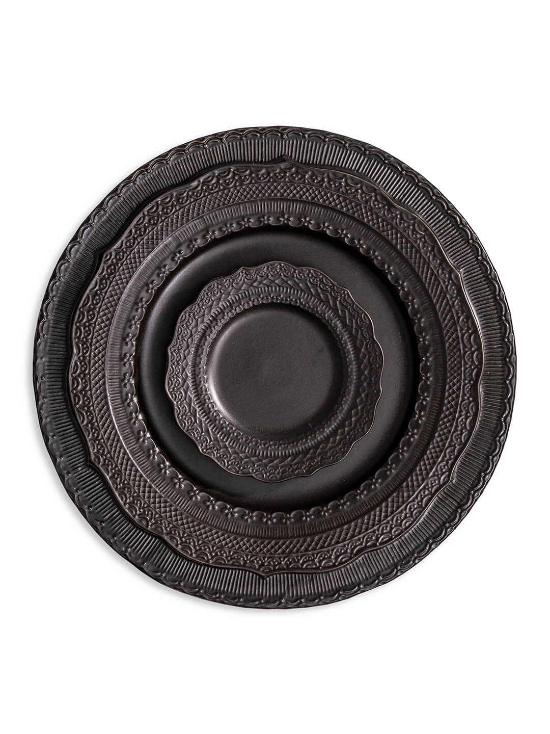 Bring a sense of moody elegance to your table with the Noir Plate Range. Each piece in this collection features a deep matte black finish and intricate embossed patterns, blending classic artistry with contemporary style. The Noir range is perfect for those who want to create a bold, unforgettable dining experience - whether it's a glamorous wedding, a chic dinner party, or a creative event.
