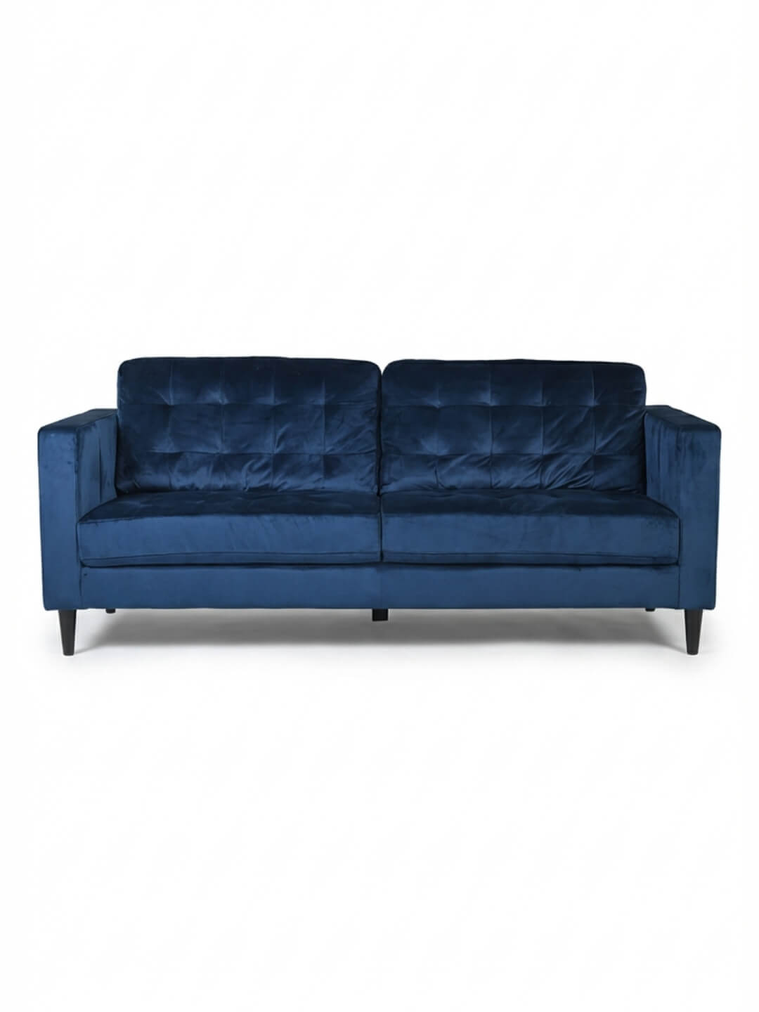 Sophisticated and striking, the Opus Sofa brings modern luxury to any event space. Upholstered in plush navy velvet with a tailored silhouette and subtle tufted detailing, this sofa is designed to offer both comfort and style. The deep blue hue adds a sense of richness and depth, making Opus a standout piece for lounge areas, cocktail parties, or styled shoots. With its clean lines and generously cushioned seat, the Opus Sofa pairs effortlessly with both contemporary and classic décor. Whether styled solo or as the anchor for a luxe seating arrangement, it invites guests to relax in refined comfort.