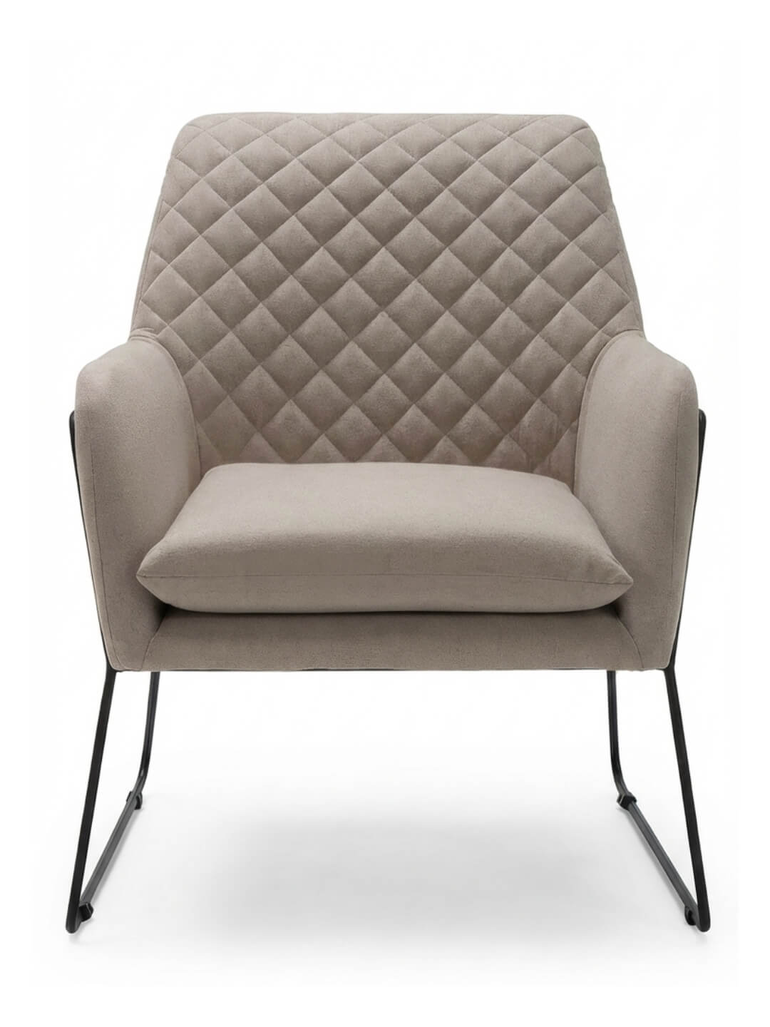 Bring refined comfort and subtle sophistication to your event with the Sandstone Chair. Upholstered in soft beige linen with a modern quilted back, this armchair combines tailored design with relaxed elegance. The sleek black metal legs add a contemporary edge, while the plush seat cushion ensures guests can unwind in style. The Sandstone Chair’s neutral palette and versatile silhouette make it a seamless addition to both classic and modern settings - perfect for lounge areas, receptions, or as a chic accent in styled vignettes. Its understated texture and inviting form pair beautifully with a wide range of décor, from minimalist to layered luxe.