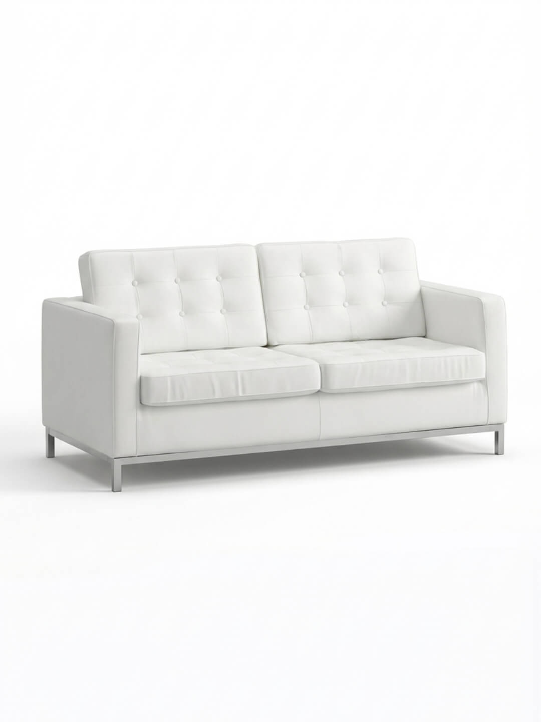 Bring contemporary sophistication to your event with the Soho Sofa. Upholstered in crisp white faux leather and set on sleek chrome legs, this sofa features clean lines, subtle tufting, and a tailored silhouette that embodies modern urban style. The Soho Sofa’s generous seat and supportive back cushions offer both comfort and polish, making it an ideal anchor for lounge areas, cocktail parties, or chic styled shoots. Its minimalist design and neutral palette blend seamlessly with both bold and understated décor, offering versatility for weddings, corporate events, and creative installations. Whether styled solo or paired with other modern pieces, the Soho Sofa delivers a look that’s fresh, refined, and effortlessly stylish.